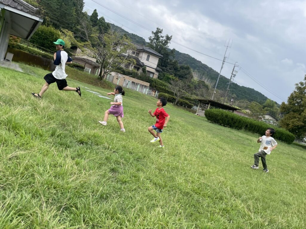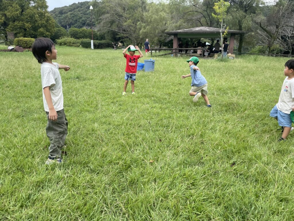 ご飯を食べ、芝生広場で「鬼ごっこ」がスタート。