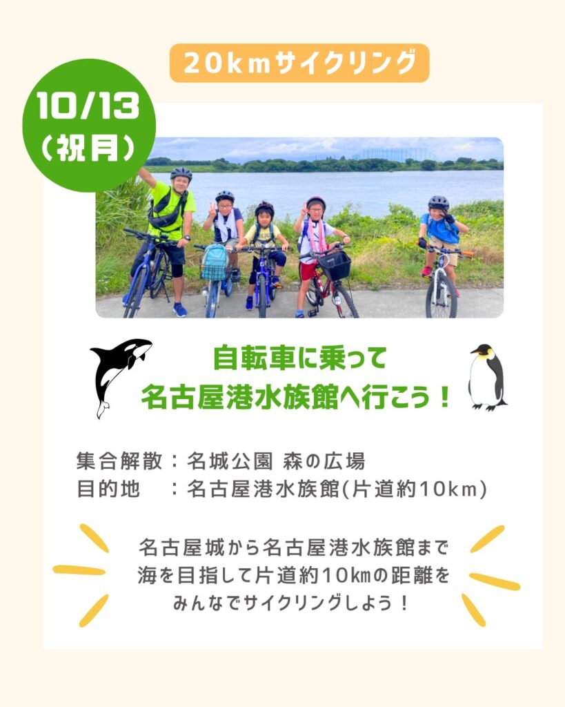 ①10/13(祝月)「自転車に乗って名古屋港水族館へいこう!〜往復20km〜」