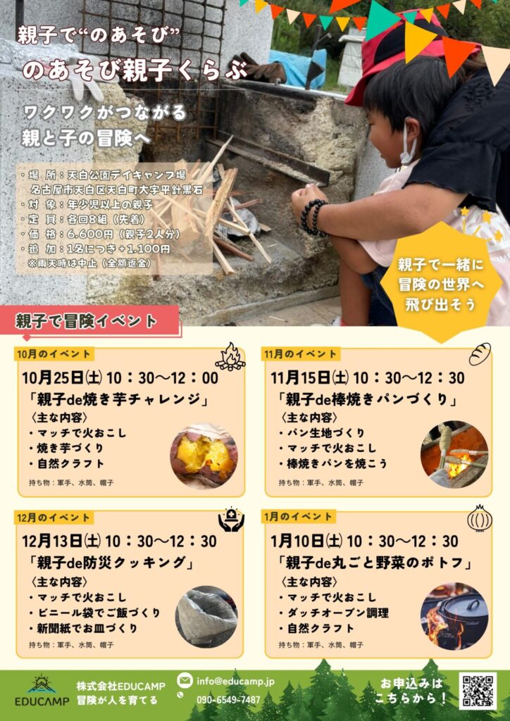 親子で自然の中で遊び、共に学び合う時間を過ごせます。