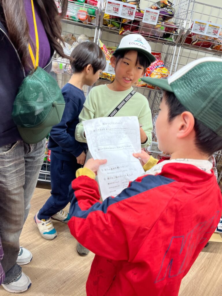 グループごとに具材を考え、限られた予算の中でスーパーへ買い出し。