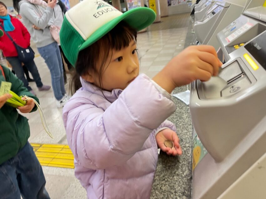 集合場所の駅では、まず切符の購入からスタート。