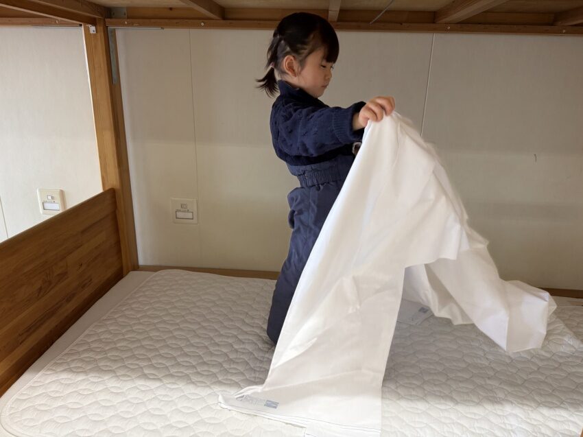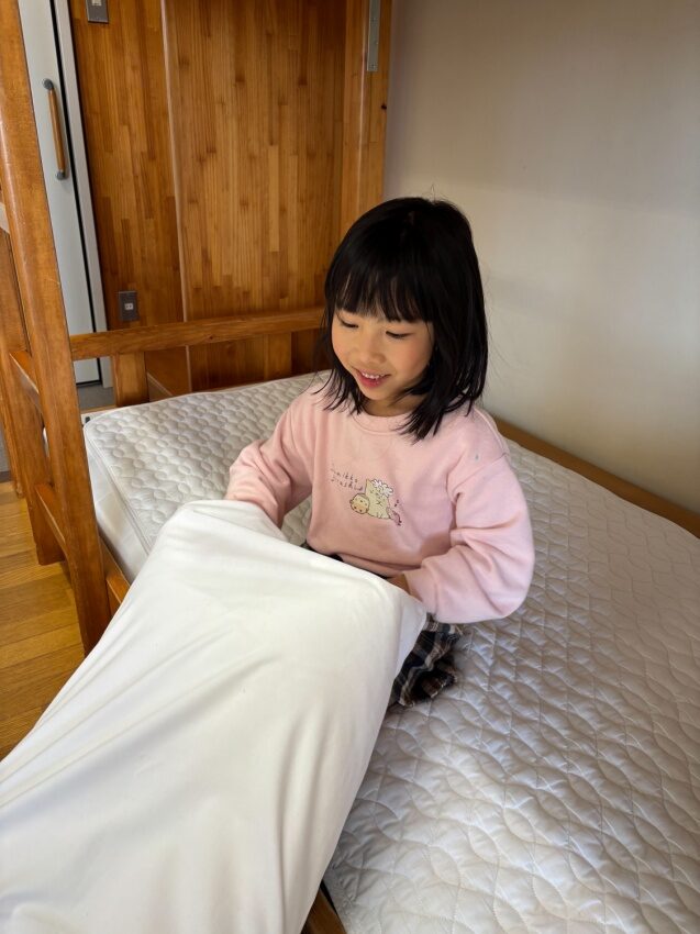自分たちでのベッドメイキングです。
