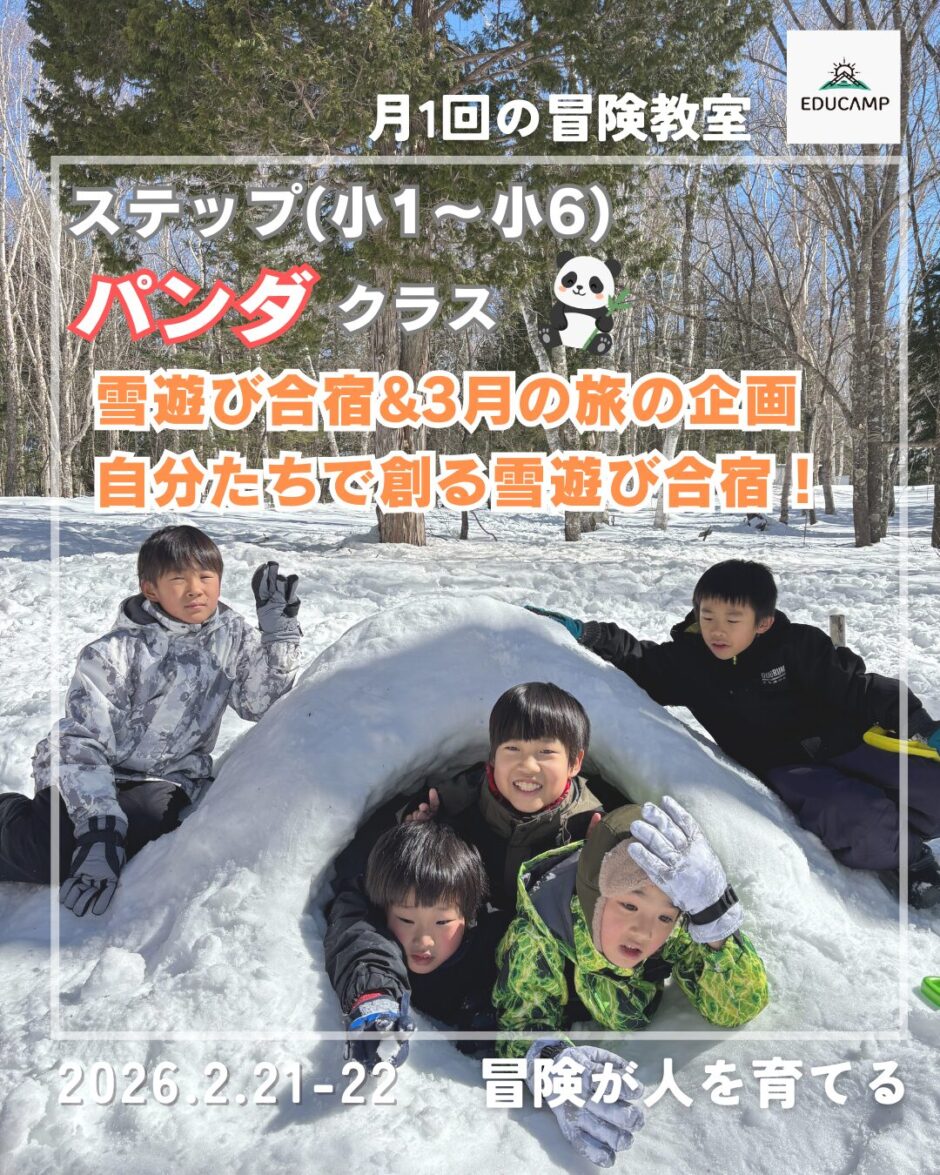 2月のステップ・パンダクラスは、雪遊び合宿へ行ってきました。