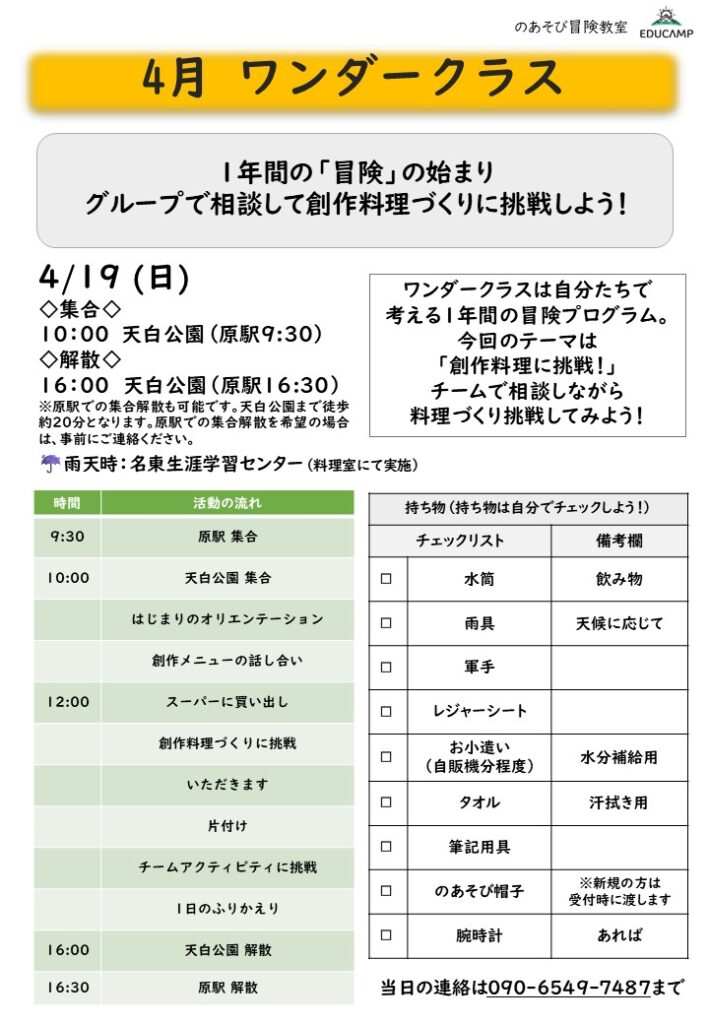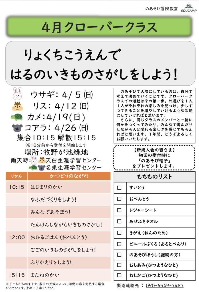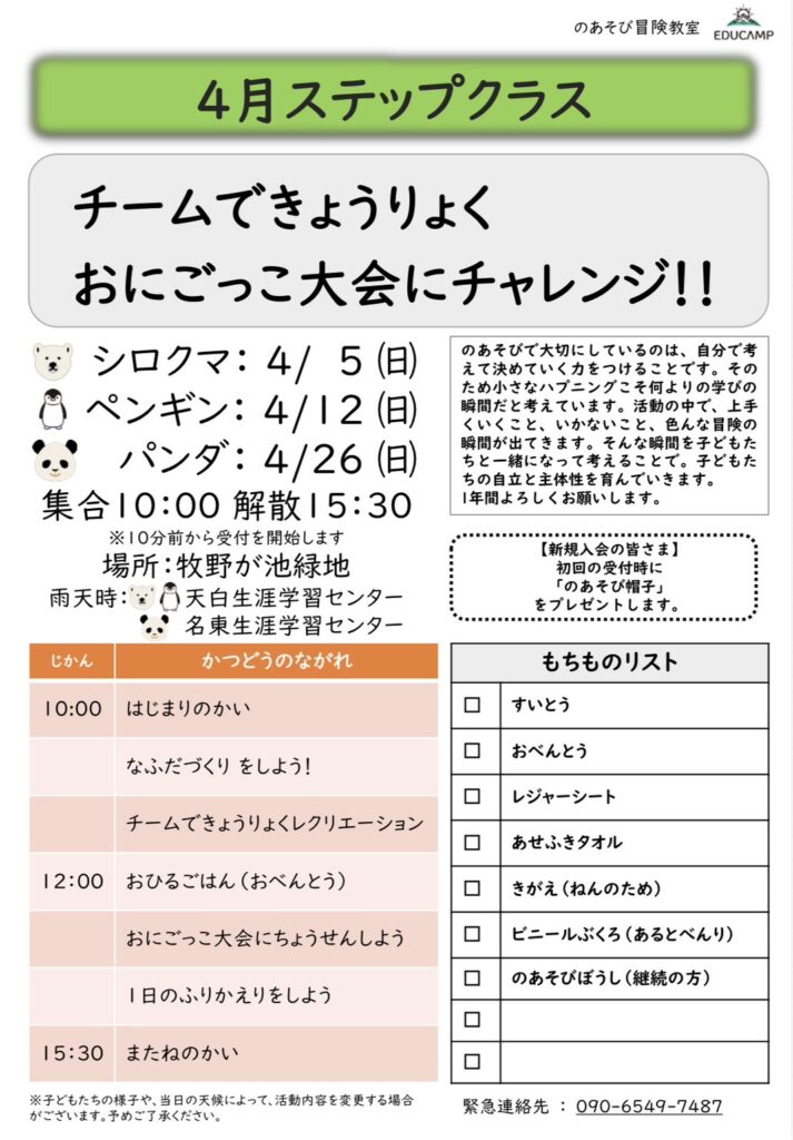 【のあそび冒険教室(月1回)】