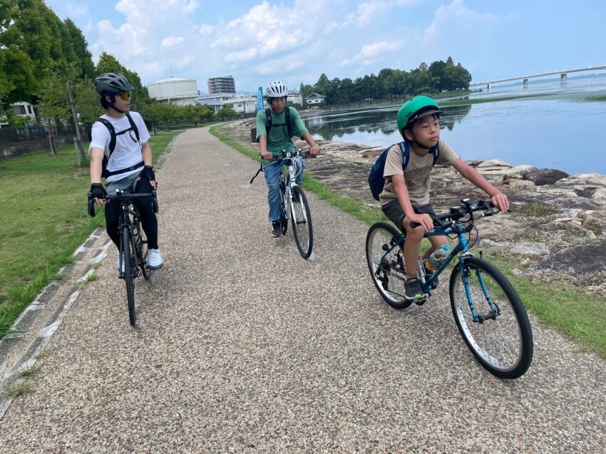 愛知池の周りにある、周回コース(約7km)を何周できるかに挑戦していくよ。安全な乗り方や集団での走行をマスターして、どこまで走れるかやってみよう!