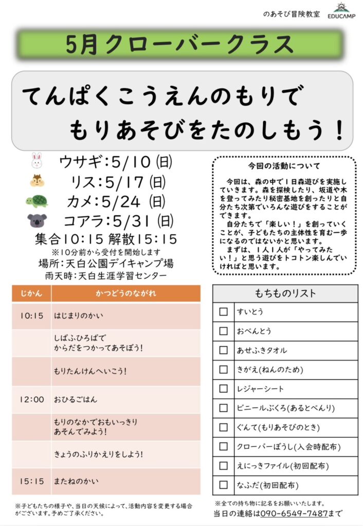 - 【5/17】クローバー(リス) :満員(キャンセル待ち受付中)
