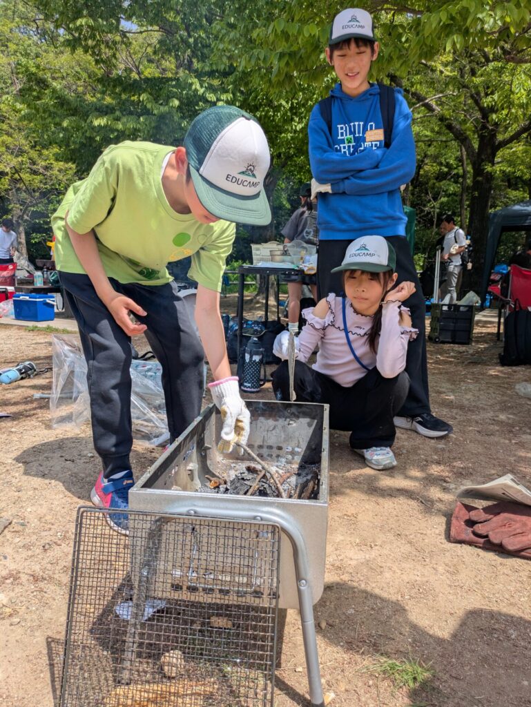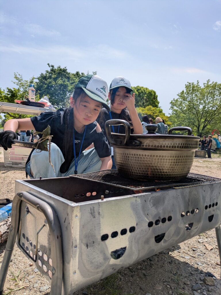 ワンダークラスでは、あらかじめ決められたプログラムをこなすのではなく、メニュー決めから材料の買い出し、そして火おこしまで、すべてを自分たちで考えながら進めていきます。